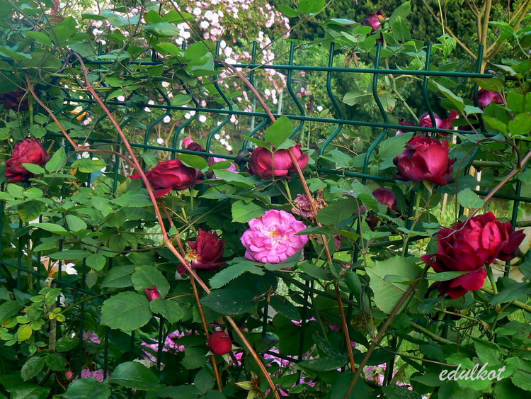 Róża ma tendencję do wybujałych pędów, dlatego pod ciężarem kwiatów pędy się pokładają.
