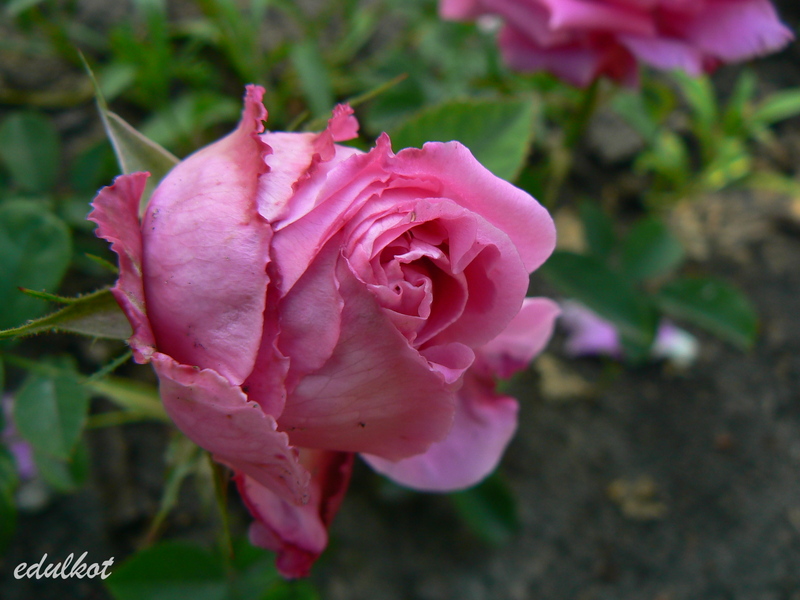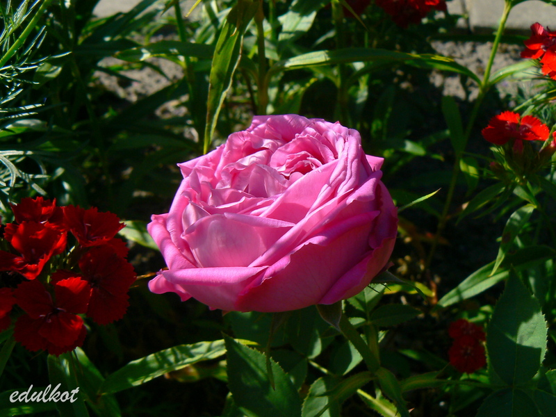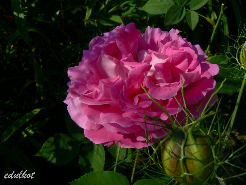 Kwiaty: bardzo duże, półpełne (16-25 płatków), karminowo-różowe, powtarza kwitnienie;