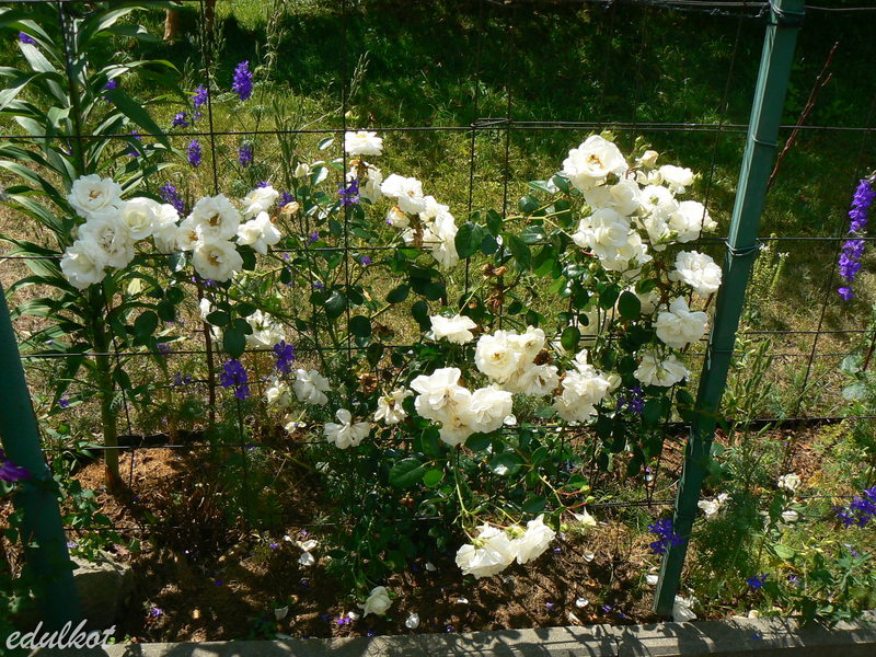 Ciężko idzie jej rośnięcie bo dopada ją plamistość, choć podobno ma być odporna na choroby, przycinać muszę ją do ziemi bo miewa uszkodzone pędy. Ale jak zakwitnie jest śliczna.