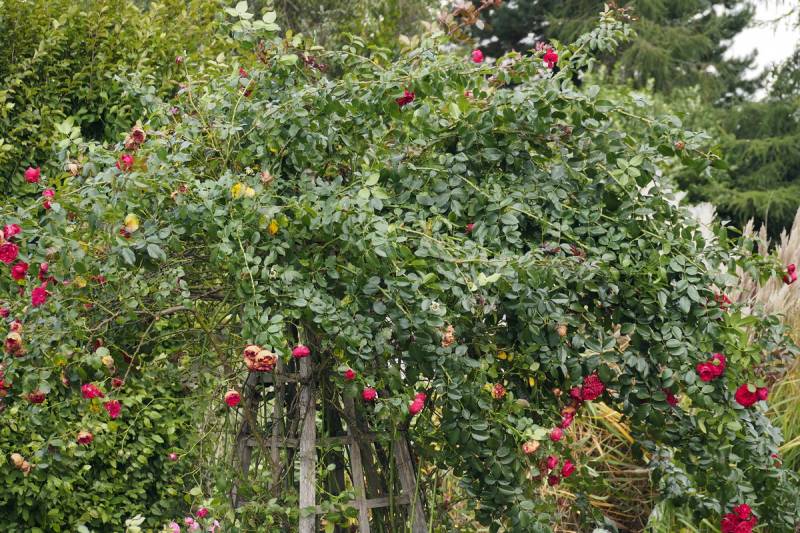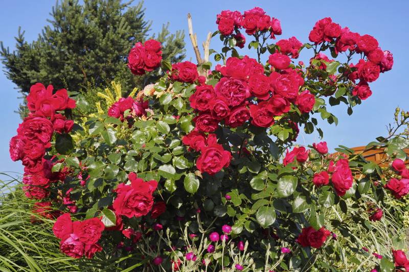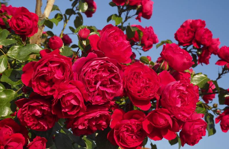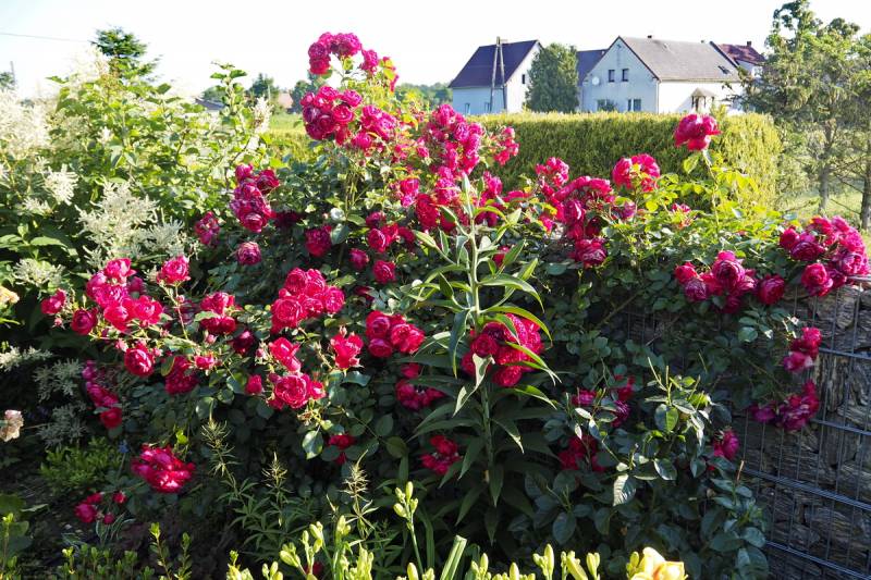 Florentina to wspaniała, obficie kwitnąca na czerwono róża pnąca, o urzekających pełnych kwiatach, jedna z najlepszych czerwonych;