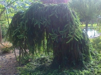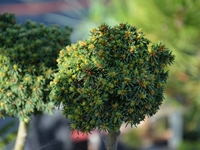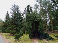 Korona smukła, stożkowata. Dolne konary z wiekiem zwieszają się, górne pozostają w większości poziomo.