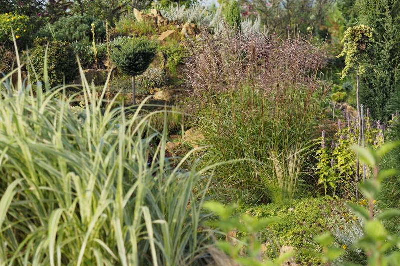 Miskanty: Morning Lights, Ferner Osten, Malepartus, Dronning Ingrid, Gnome, Kleine Fontane, Ballerina, Okapi, Mysterious Maiden, Rosi, Apache, Miskant olbrzymi Jubilar