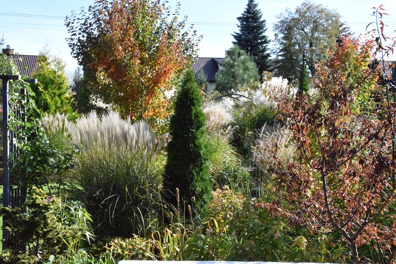 przy tarasie rośnie proso Nican, na przemian z miskantem Mysterious Maiden, ale ten ostatni nie zachwyca, bo straszna w tym miejscu susza