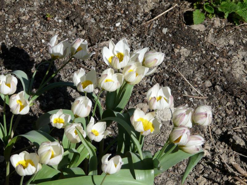Tulipa polychroma na tapecie. Gatunek pochodzi z Iranu i Afganistanu, ale spokojnie - rośnie tam na takich wysokościach i w takich warunkach że spokojnie daje radę w naszym klimacie. Pierwszy raz został opisany w 1885 roku przez botanika Otto Stapfa. Kwitnie bardzo wcześnie, niemal zaraz po tulipanach turkiestańskich. Malutki, na maksa 15 cm wysokości w porywach, ale kiedy rozwinie kwiaty jest niezwykle widowiskowy (no tak, bezczelnie przyznaję że dokupiłam w tym roku cebulki tego gatunku). Tych kwiatów na pędzie ma zazwyczaj od trzech do pięciu, ponoć to go odróżnia od