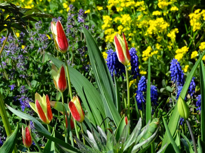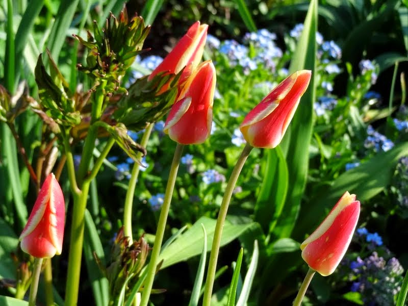 Tulipany Klusjusza zachwyciły mnie wiosną w Arboretum Makču Pikču ... nie wiem czy to odmiana 'Peppermintstick' a może 'Lady Jane' ale pięknie wygląda w takim masowym nasadzaniu