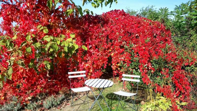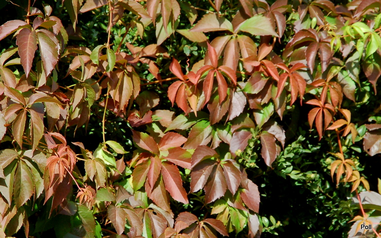 , jest moim ukochanym pnączem. Obsadziłam nim płoty, pergole a nawet rośnie przy trzech ścianach domu. Nie wszyscy go lubią, bo nie tylko owija się wokół podpór, ale przywiera 'mackami' do tynków, niszcząc je nieco. Mi to nie przeszkadza, cos za coś. Uroda winobluszczu pięciolistkowego, wynagradza te minusy. Jest także nieco uciążliwy podczas kwitnienia - szczególnie dla osób uczulonych na pszczele użądlenia. Gdy pokrywa się mnóstwem niepozornych, malutkich kwiatuszków, wokół rozchodzi się jedno wielkie, ogłuszające brzęczenie.
