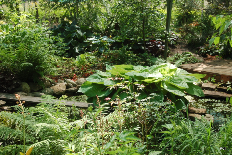 To było kilkanaście lat temu ... Kręciły mnie wtedy skalniaki , więc zaplanowałam na samym środku to, co dziś nazywam górką skalną. Pieczołowicie obsadzałam tymi drobinkami, karłowymi odmianami iglaków... Hosty zajmowały wtedy ok 10 m kwadratowych powierzchni chronionej nieco cieniem przez stary dąb i tylko w godzinach popołudniowych. Z biegiem czasu hosty, paprocie i inne cienioluby stały się tym, co mnie pociągnęło , ta fascynacja trwa do dziś i wątpię , by już odpuściła .