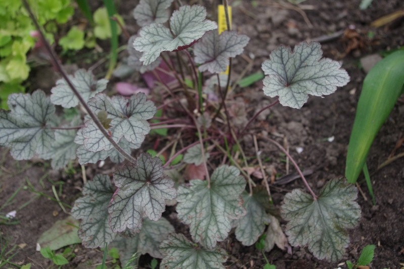 Rodzaj: Żurawka (Heuchera) Odmiana: Silver Scrolls Wymiary : odmiana tworząca kępy o szerokości 35 cm i wysokości 20 cm/55 cm z kwiatostanem. Kolorystyka: srebrne liście z ciemnym, wyrazistym żyłkowaniem. Spód liścia purpurowy. Kwiaty: białe. Kwitnienie: od maja do sierpnia. Warunki: stanowisko pół-cieniste/słoneczne.