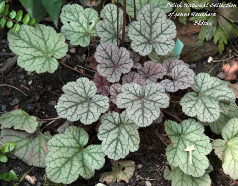 Rodzaj: Żurawka (Heuchera) Odmiana: Silver Lode Wymiary: tworzy kępy o średnicy 30 cm i wysokości 15 cm/75 cm z kwiatostanem. Kolorystyka: liście w odcieniach zieleni, srebra i fioletu z kontrastowym żyłkowaniem. Kwiaty: biało-różowe. Kwitnienie: od maja do września. Warunki: stanowisko pół-cieniste/słoneczne.