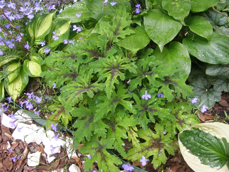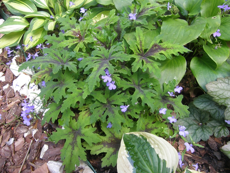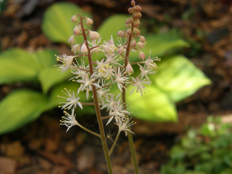 Rodzaj: Tiarella Odmiana: Timbuktu Wymiary: tworzy kępy o szerokości 30 cm i wysokości 20 cm. Kolorystyka: liście mocno powcinane, zielone z mocno bordowym centrum Kwiaty: białe, typowe dla tiarelli - gwiazdkowate Kwitnienie: od maja do czerwca, u mnie pierwsze zawiązki kwiatów pojawiły się już w drugiej połowie kwietnia Warunki: stanowisko od półcienia do słońca