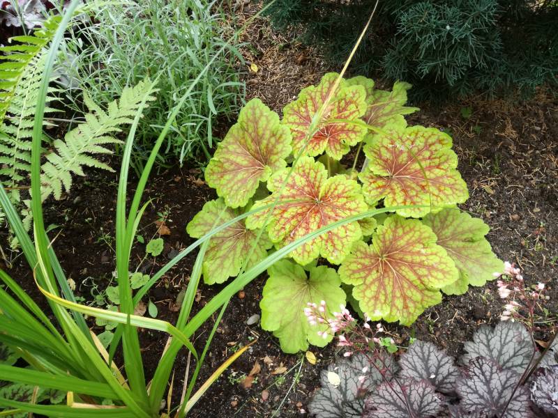 Kolorystyka: liście zielono-żółte z czerwonym żyłkowaniem.