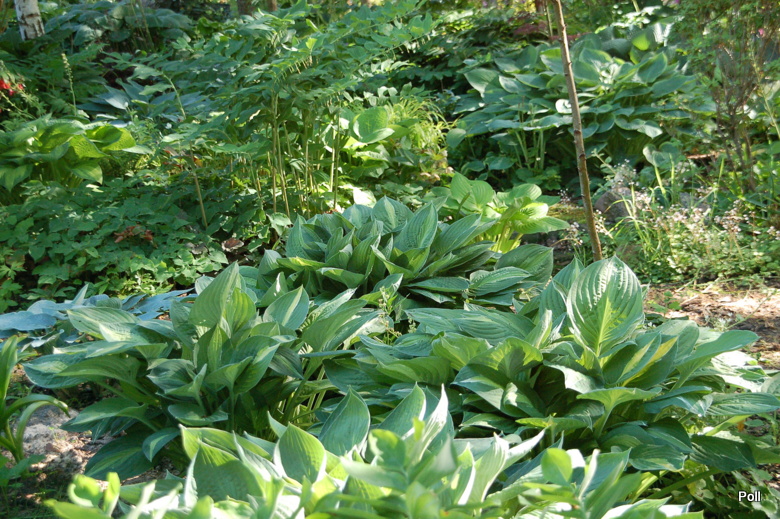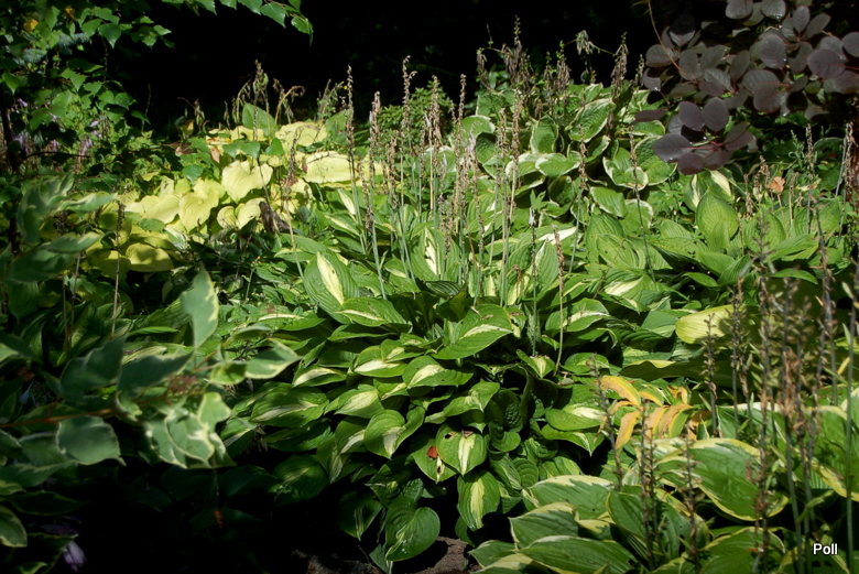 Miejsce, gdzie rosną jest obecnie trochę zbyt słoneczne w południe, ale Striptease to żelazne hosty. Nie kapryszą i pięknie rosną.