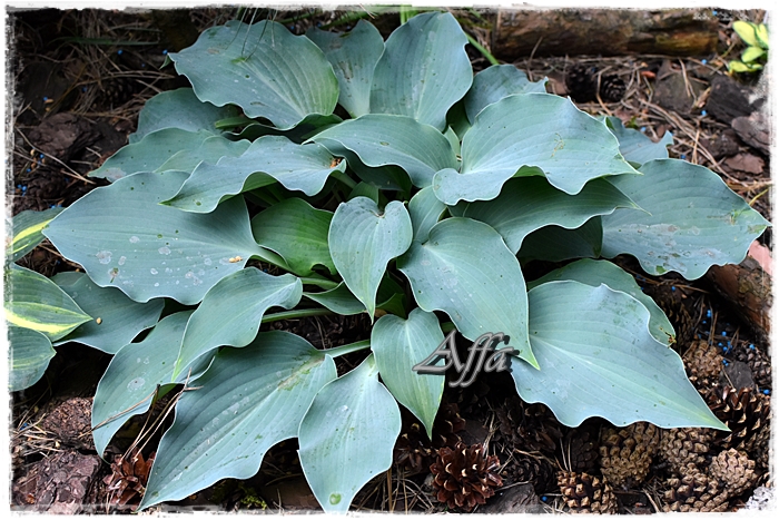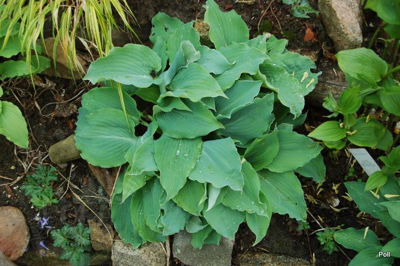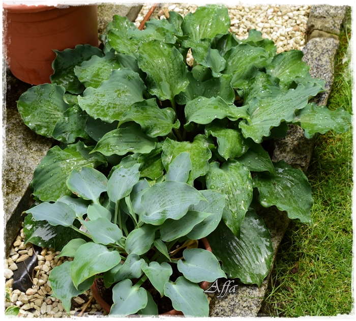 Hosta Titanium, nie osiągając olbrzymich rozmiarów na swoim starym miejscu, nieco się gubiła, więc została przeniesiona na początku tego sezonu na nieco bardziej eksponowane miejsce. Dodatkowo, swoim niebieskim kolorem miała ożywić trochę zbyt zielone nasadzenia na stoku paprociowym. Dobrze się na tym miejscu zaaklimatyzowała i choć jej wzrost nie jest duży, jest dobrze widoczna dzięki sporej szerokości kępy.