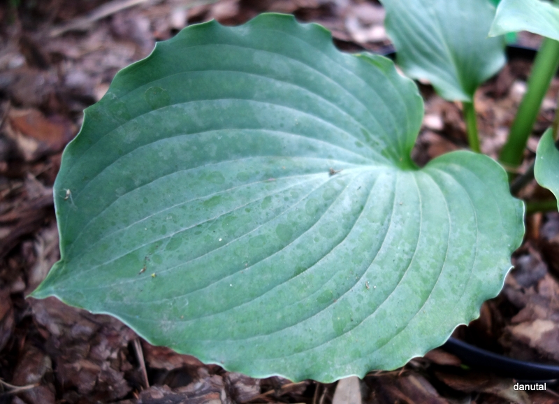 Rozmiar:M/L wysokość 45-55cm Liście: duże, sercowate; niebiesko-szaro-zielone z pofalowanym brzegiem i białym spodem Kwiaty: lawendowe w lipcu/sierpniu Zalecane stanowisko: najlepiej półcień, toleruje poranne słońce Uwagi: