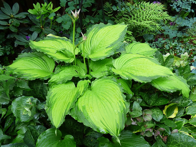 Hosta 'Amalia' i jej kwiatostany... po letnim opadzie :deszcz