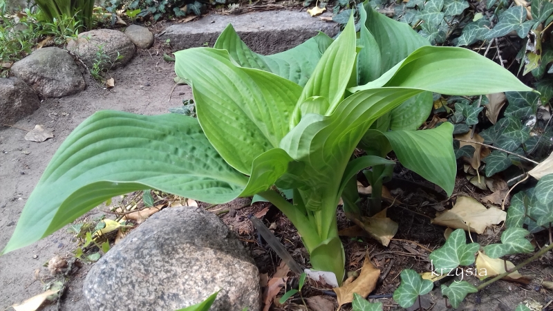 Sadzonka pochądząca z wymiany sprzed 5 lat, rośnie na stanowisku półcienistym pod starym modrzewiem, regularnie nawadniana. Na dzień dzisiejszy to zdecydowanie największa hosta w moim ogrodzie.
