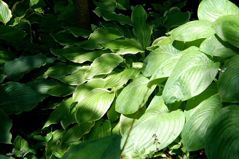 Hosta Sugar and Cream rośnie na jasnym, sporo podlewanym stanowisku.