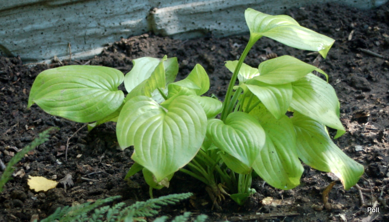 Hosta Tortilla Chip rośnie u mnie pod dereniem Satomi, słońca ma tam całkiem sporo. Latem liście robią się żółtawe, ale tak delikatnie ... i to mnie trochę zastanawia