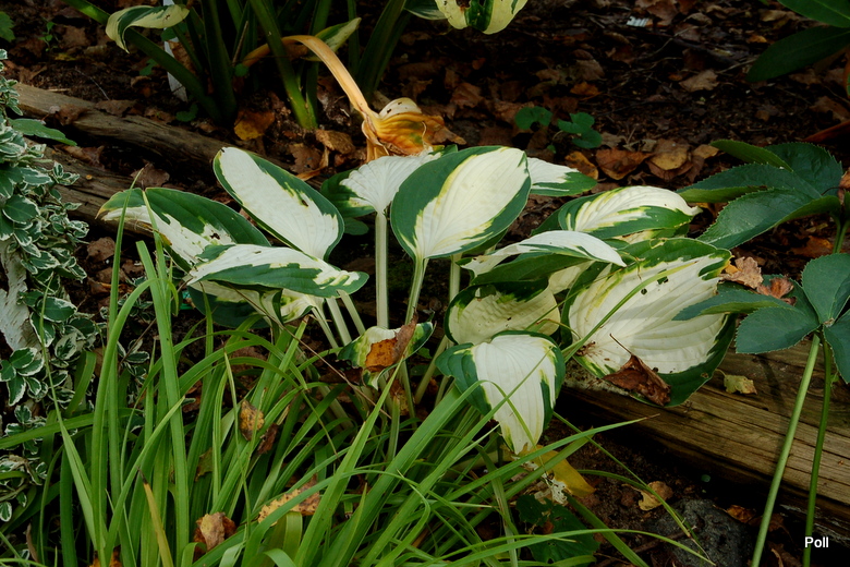 Hosta Color Festival nadzwyczaj dobrze wygląda o tej porze, mimo białego centrum liścia.