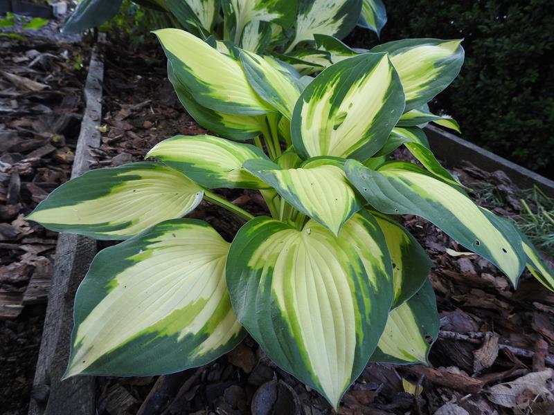 Wrześniowa fotka Hosty 'Color Festival' . Nowe liście wyglądają jakby z innej hosty ;)