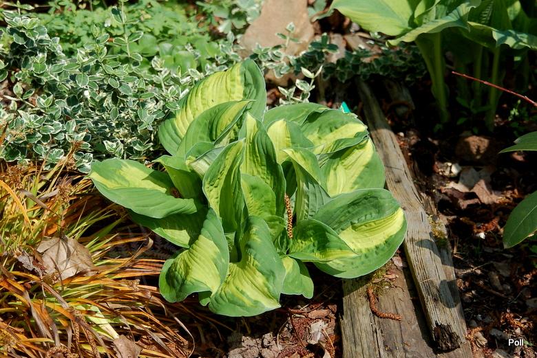 Moja Color Festival stale rośnie na tym samym, mało ciekawym stanowisku, bo skąd brać lepsze dla wszystkich roślin? :nie Tak więc, niemal się nie rozrasta, choć mam ją już wiele lat. Po prawej, hosta Flemish Beauty.