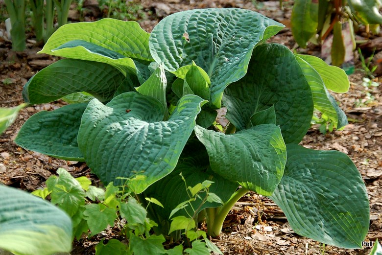 Liście: duże, twarde, o świetnej substancji i mocno burchlaste; szarozielone z dobrze widocznym unerwieniem, wiosną pokryte niebieskim pudrem;