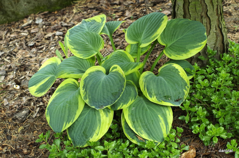 Moja Stepping Out , z kolei ma w tym roku sporo kłów, ale liście sporo mniejsze, niż w ubiegłym roku. Po miejscu, gdzie rosnie, przeciagnał przymrozek i kilka host właśnie tak wygląda. Nie bardzo miałam czas ją dopieścić, więc nie wiem, co będzie w przyszłych sezonach.