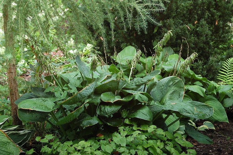 Zawsze staram się przypomnieć - szczególnie początkującym hościarzom - ze hosty olbrzymy, wymagają nieco większych starań, aby wyrosły na takie, jak je stworzono. Stanowisko, wiadomo- ani zbyt jasne, ani zupełna ciemnica. najlepsze, to miejsce w cieniu drzew liściastych, czyli tzw świetlisty cień. Ponieważ do stworzenia wielkiej ilości zielonej masy potzrebuja odpowiedniego odżywiania, nie można zapominać o wiosennym nawożeniu, czyli tuż przed startem kłow (aby zapewnić roślinie zasoby pokarmowe w najwazniejszej fazie wzrostu) i w trakcie sezonu. Kiedy hosta już rozwinie liście, sypanie wszelkimi sztucznymi nawozami jest dość niebezpieczne, gdyż łatwo można roślinę przypalić. polecam więc własnej produkcji gnojówkę z wiosennych chwastów, które zawierają dużo azotu. Nawożenie to nie powinno przeciągnąć się za 15 lipca. po tym terminie dajemy roślinie czas na przygotowanie się do jesienno-zimowego spoczynku.