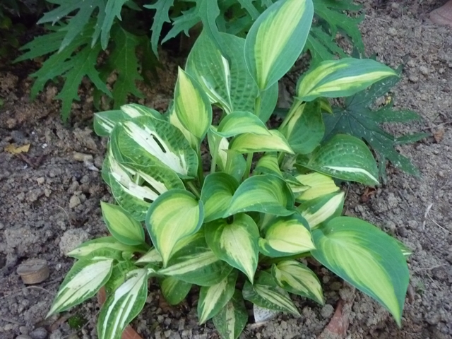 W pełni hostowego sezonu stwierdzam, że jest to najbardziej zwariowana hosta w moim ogrodzie Zwariowana, w pozytywnym tego słowa znaczeniu. Liście... każdy nadal inny. Inaczej układają się kolory. Nie ma tu sztampowego w opisie marginesu, czy wypełnienia jakimś konkretnym kolorem środka. Wielkość liści jakby z kilku różnych host. Do tego część liści jest ładnie układająca się, a część radośnie powykręcana w różnych kierunkach. Jeszcze nie osiągnęła rozmiaru M. To taki rozczochrany, radosny maluch