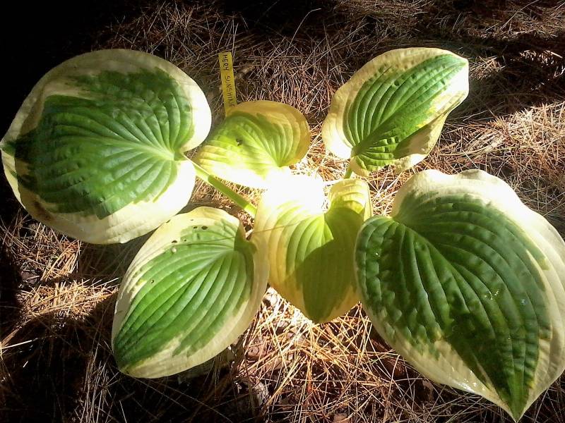 Wielkość - od 50 do 60 cm Liście - centrum jasnozielone , margines kremowy w trakcie sezonu przechodzący w biały Kwiaty - jasno lawendowe, prawie białe, kwitną na przeomie czerwca i lipca Wzrost - średni do wolnego Stanowisko - cień , półcień