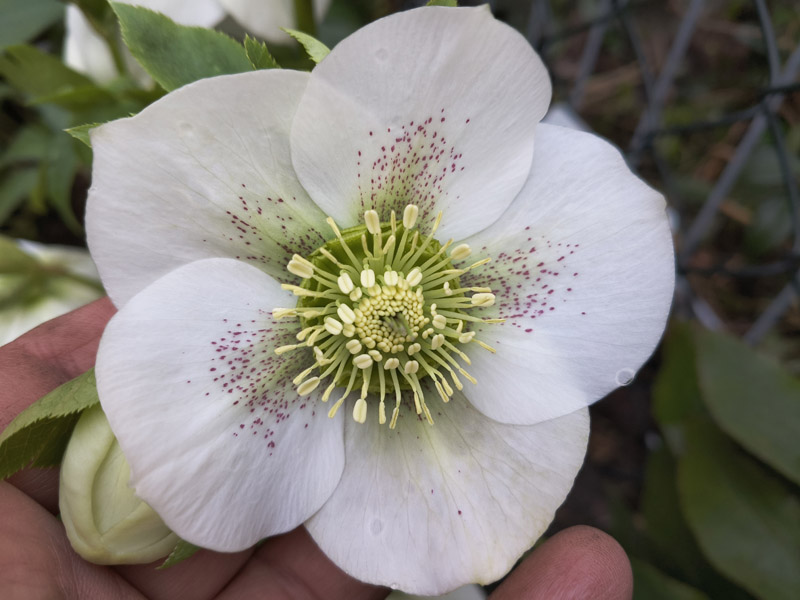 Ciemiernik Claudia. Na razie zakwitł pojedynczym pędem, kwiat duży i nie zwisa.