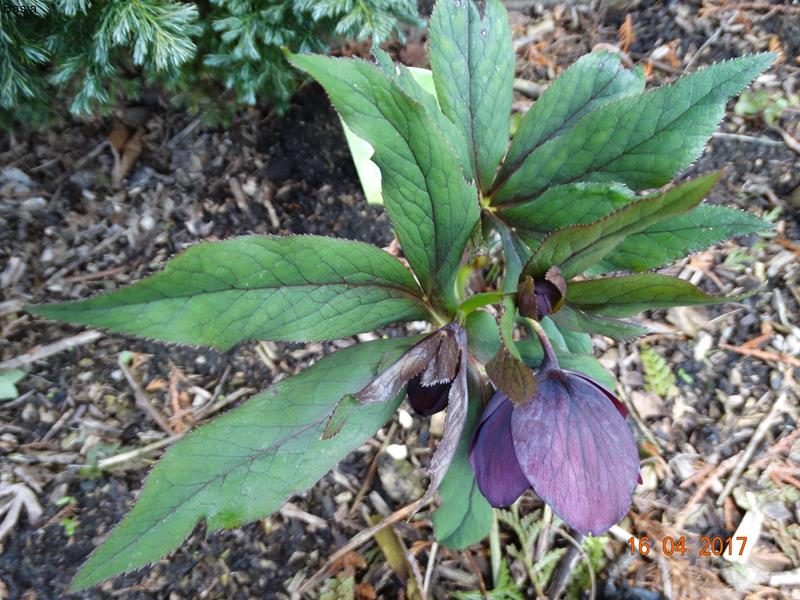 Helleborus x hybridus 'Pretty Ellen Purple' bardzo słabo u mnie rośnie :( Pozytyw jest taki, że w tym roku zakwitł, ale i tak noszę się z zamiarem przesadzenia go na bardziej widne stanowisko. Towarzystwo jałowców chyba mu nie odpowiada.
