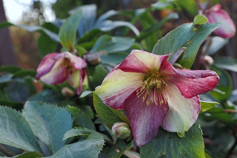 Helleborus x glandorfensis HGC® 'Ice N’ Roses Dark Picotee' w sezonie 2025