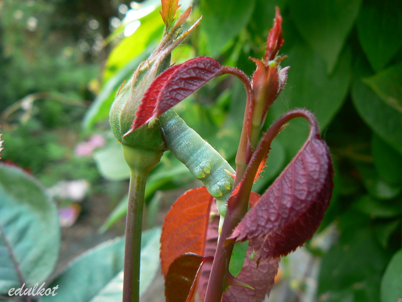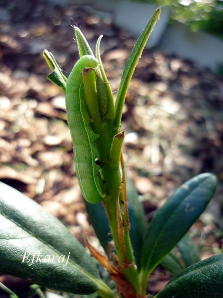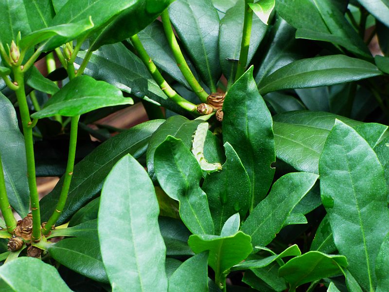 na liściach różaneczników, tudzież na liściach innych roślin. U mnie oprócz rodków podżerane są też