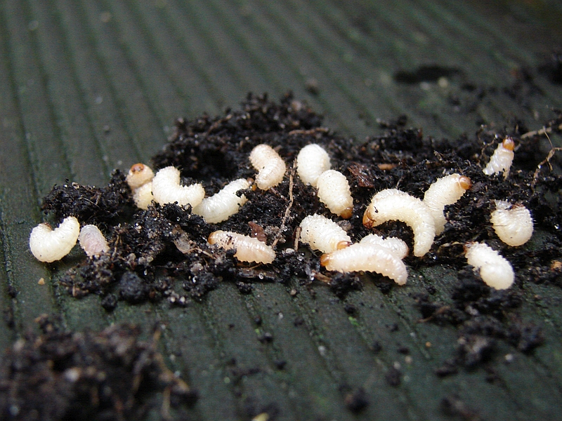 ---> O wiele groźniejsze dla roślin są larwy, które podgryzając korzenie, często doprowadzają do całkowitego zniszczenia tkanki w szyjce korzeniowej. Roślina nie jest wówczas w stanie pobierać z gleby ani składników pokarmowych ani wody. Konsekwencją jest obumarcie.