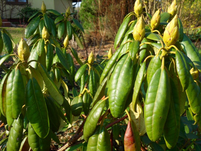 W ubiegłym roku sadząc rh od razu podsypałam granulowanym obornikiem końskim, w tym nowo posadzonych jeszcze nie nawoziłam, mam zamiar zastosować dolistnie Magiczną Siłę dopiero po kwitnieniu. Rośliny dobrze przezimowały (młode rh i japonki okryłam włókniną), mają ładne, zielone liście.