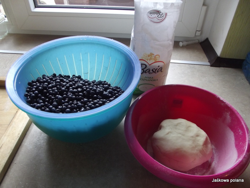 mąka pszenna - dodaję tyle, aby ciasto było sprężyste; po wyrobieniu (początkowo mikserem, potem ręcznie na stolnicy) odkładam na kilkanaście minut przykrywając je miską