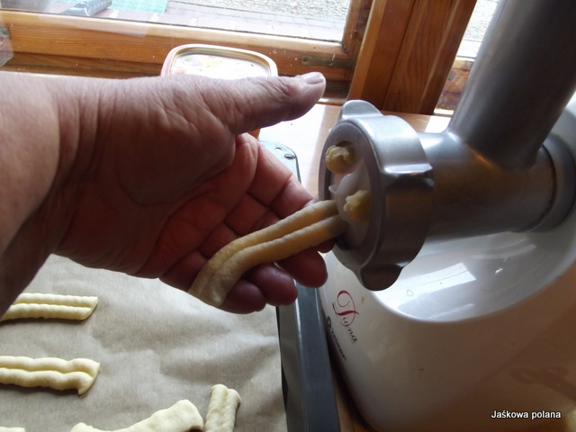 Sąsiadce ciasteczka upiekły się pyszne, ale nie trzymały formy, znalazłam inny przepis i moje wyszły wzorcowe, dziś oddałam właścicielce foremki wraz z nowym przepisem i kilkoma ciastkami na podwieczorek.