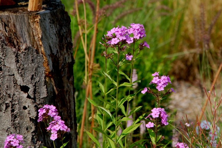 'Hesperis', to jeden z mniej 'ozdobnych' floksów, ale moze dlatego mi się najbardziej podoba-przypomina mi babcirine floksy, od których aż pękał ogród w pewnej świętokrzyskiej wsi. Nie mógł to być oczywiścies ten płomyk, bo wyhodował go w 2000 roku Holender Jansen . U mnie jest najwyższym i najbardziej smukłym floksem z tych, które posiadam. Ma też najmniejsze, ale liczne kwiaty o zaokrąglonych płatkach. Sam hodowca pisze o nim na stronie swojej szkółki 'Coen Jensen Vaste Planten', że Hesperis” ma w czasie upałów tak intensywny, że aż świecący czerwonofioletowym kolor a kwiatostan składa się z wielu małych kwiatów. Jest wysoką byliną, osiagającą do 140 cm wysokości..Istnieje możliwość, iż będzie po kwitnieniu 'trochę pokrywał się pleśnią' (chodzi o mączniaka???) . Dodaje też, iż 'Hesperis' jest odmianą floksa szczególnie popularną za granicami Holandii