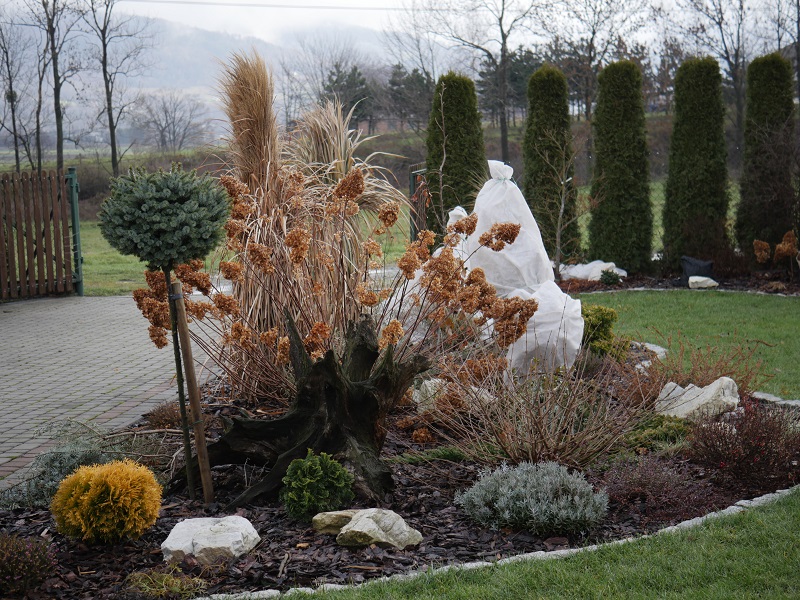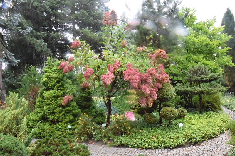 Hortensja 'Vanille Fraise' w ogrodzie pokazowym Mini Arboretum Daglezja w Rykach 16 września 2017 r.