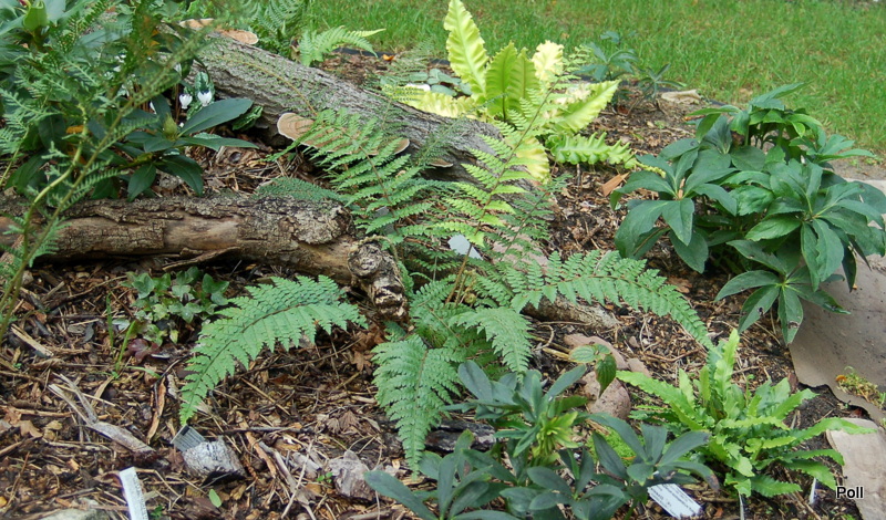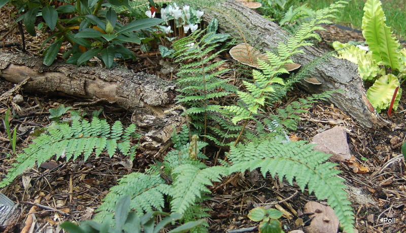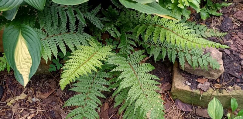 Jedna z moich kępek paprotnika Woronowa, która rośnie na lekko wzniesionej rabacie pod sztuczną cieniówką. Gleba jest tu żyzna, 'wzmocniona' dużą ilością kompostu liściowego i zleżałych zrębek, dlatego liczę, ze niedługo rozpocznie się jesienne widowisko.