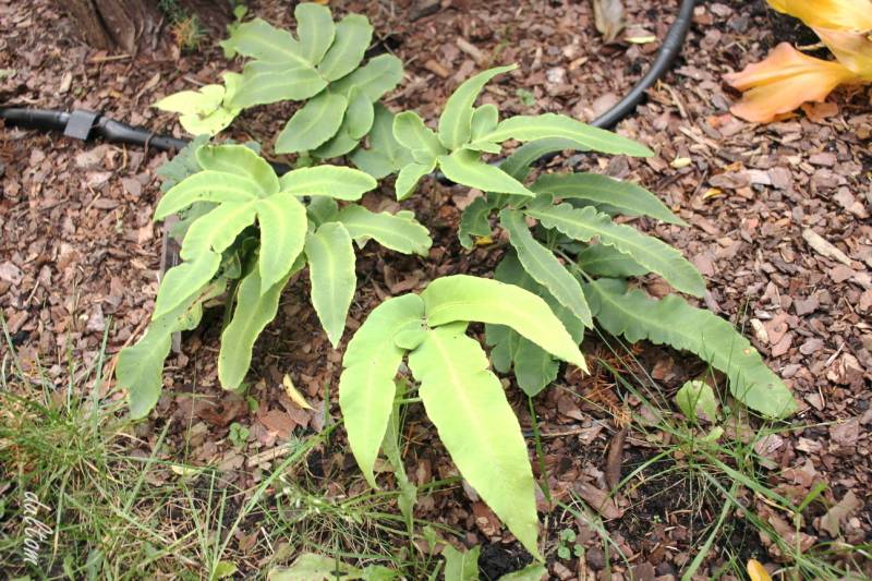 Nerecznica Siebolda wznowiła wegetację jako jedna z ostatnich paproci w ogrodzie, ale jeden liść chyba został muśnięty przymrozkiem, bo w miejscu czubka była tylko mała brązowa zaschnięta kulka.