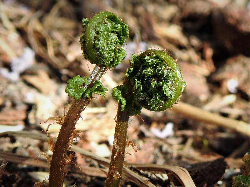 Athyrium filix-femina 'Frizeliae' startuje trochę później niż w zeszłym roku.