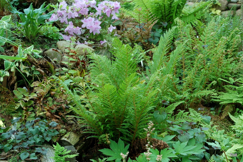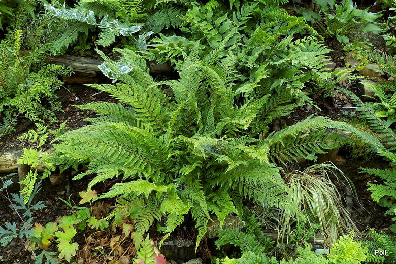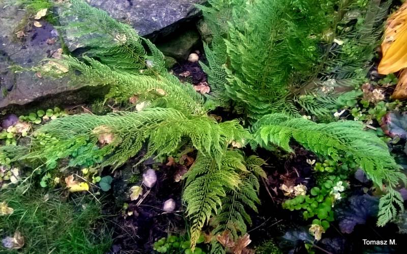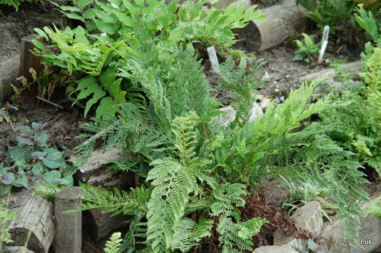 Polystichum setiferum 'Plumosum Bevis' na stoku paprociowym