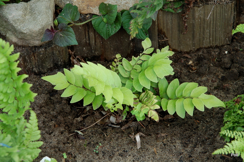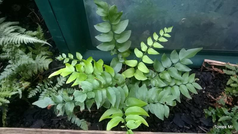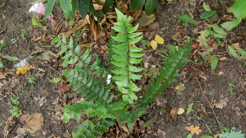 Cyrtomium lonchitoides na stanowisku w mocnym cieniu leszczyn nie ucierpiało od przymrozków. Gorzej, że w tym miejscu buduje się lekko wzniesiona rabata i będzie musiało zmienić miejsce.
