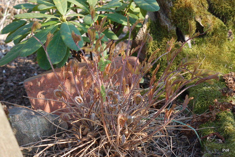 No cóż... takie są skutki wyrywności niektórych roślin, ale z drugiej strony, jak nie maja być wyrywne, skoro zimy niemal nie było a początek kwietnia przywitał nas temperaturami powyżej 20C. :blink: Bywały już takie wiosny, kiedy Osmunda lancea była podobnie przemrożona, ale ładnie regenerowała się, choć liści zarodnionośnych już nie produkowała (tylko asymilacyjne). Ze względu na ten szybki start, powinna być sadzona w glebie wolno nagrzewającej się, na chłodniejszym stanowisku. U mnie, na Sławojkowie, gleba jest lekka, piaszczysta, więc szybko łapie temperaturę odpowiednią do wznowienia wegetacji. Powinnam chyba zafundowac sobie drugi egzemplarz (była w sprzedaży w Berlinie) i posadzić - dla porównania - w mocnym, chłodnym cieniu. Ciekawa jestem, o ile takie stanowisko opóźniłoby wiosenny start. think: