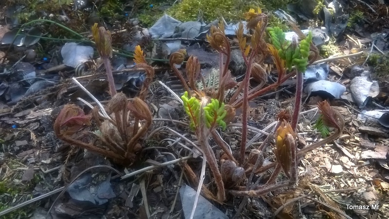 Jak zawsze pierwsza i jak zawsze, za wcześnie. Osmunda lancea już pokazała biało owłosione zawiązki pastorałów. Nawet specjalnie nie zabezpieczałam, bo musiałabym całą kępę obsypać a nie bardzo mam czym.