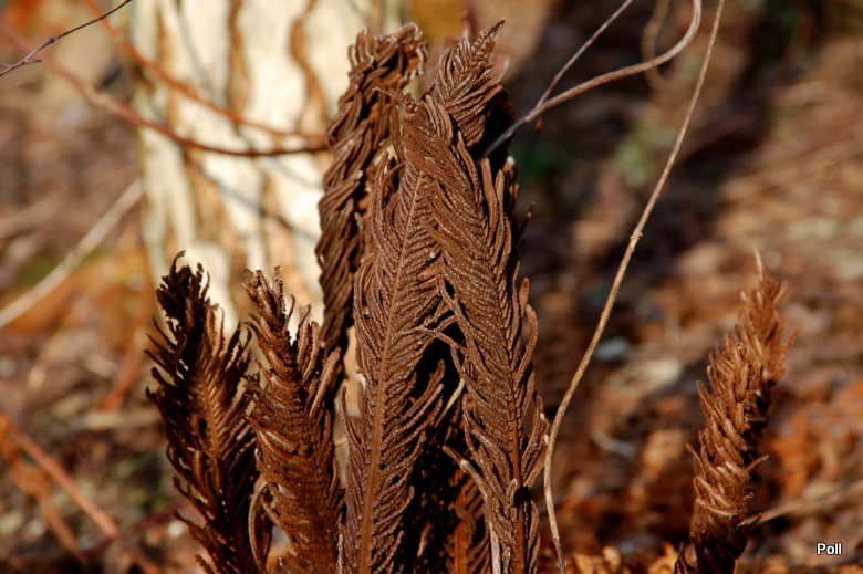 Ubiegłoroczne, zbrązowiałe sporofile pióropusznika - zdjęcie sprzed kilku dni
