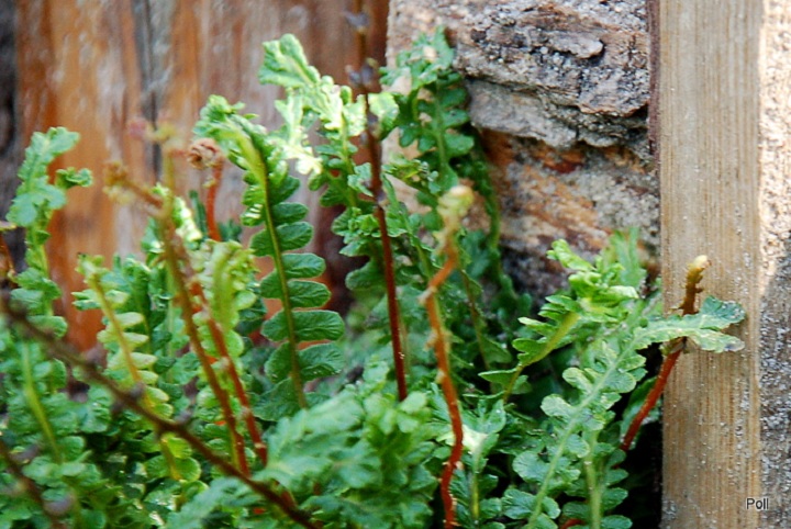 Rozwijające się, 'szczuplejsze' i bardziej kolorowe sporofile na tle ciemniejszych, zielonych i błyszczących trotofili (zdjęcie z początku czerwca)