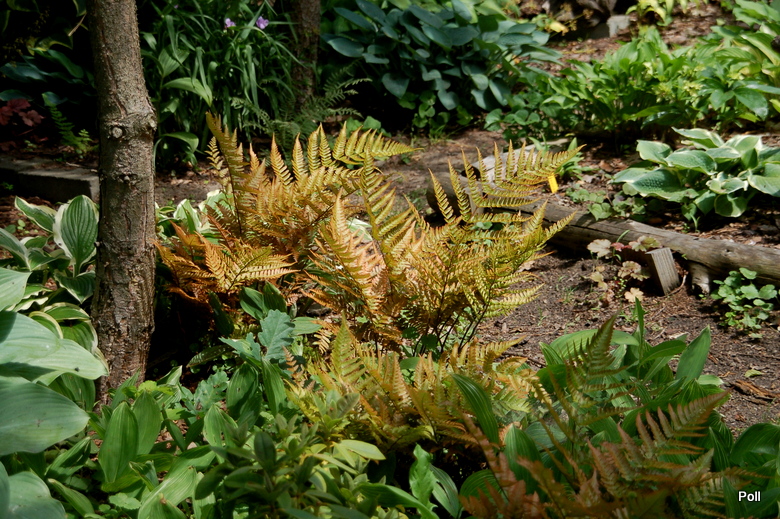 Wydaje mi się, że nie powinna być sadzona w bardzo głębokim cieniu, bo wtedy nie wybarwia się tak jaskrawo. Mam dwa egzemplarze nerecznicy czerwonozawijkowej pod dębem, gdzie promienie słoneczne niemal nie dochodzą i są one bardziej bardziej stonowane w kolorach. Młode przyrosty są oczywiście rude, ale liście bardzo szybko tracą ten kolor i zielenieją